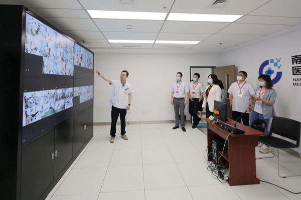随后,刘陆阳主任助理一行观摩调研我院医学模拟中心,现场了解2021年省中医住培结业考核信息化开展情况,在医学模拟中心了解考场进展情况,听取介绍,走访各标准化考站、多媒体教室等地,实地感受考核部署实施情况。